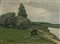 Francesco Menzio "Paesaggio" 1922 olio tela applicata a cartone (cm 35x49) Firma