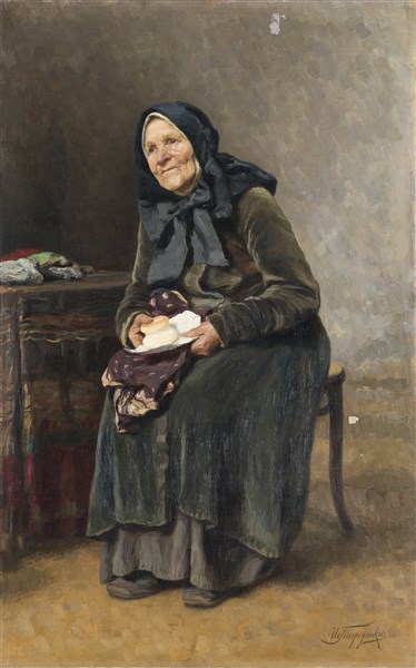 Ivan Ivanovitch Tvoroshnikov "L'umile pasto" olio su tela (cm 103,5x65) Firmato