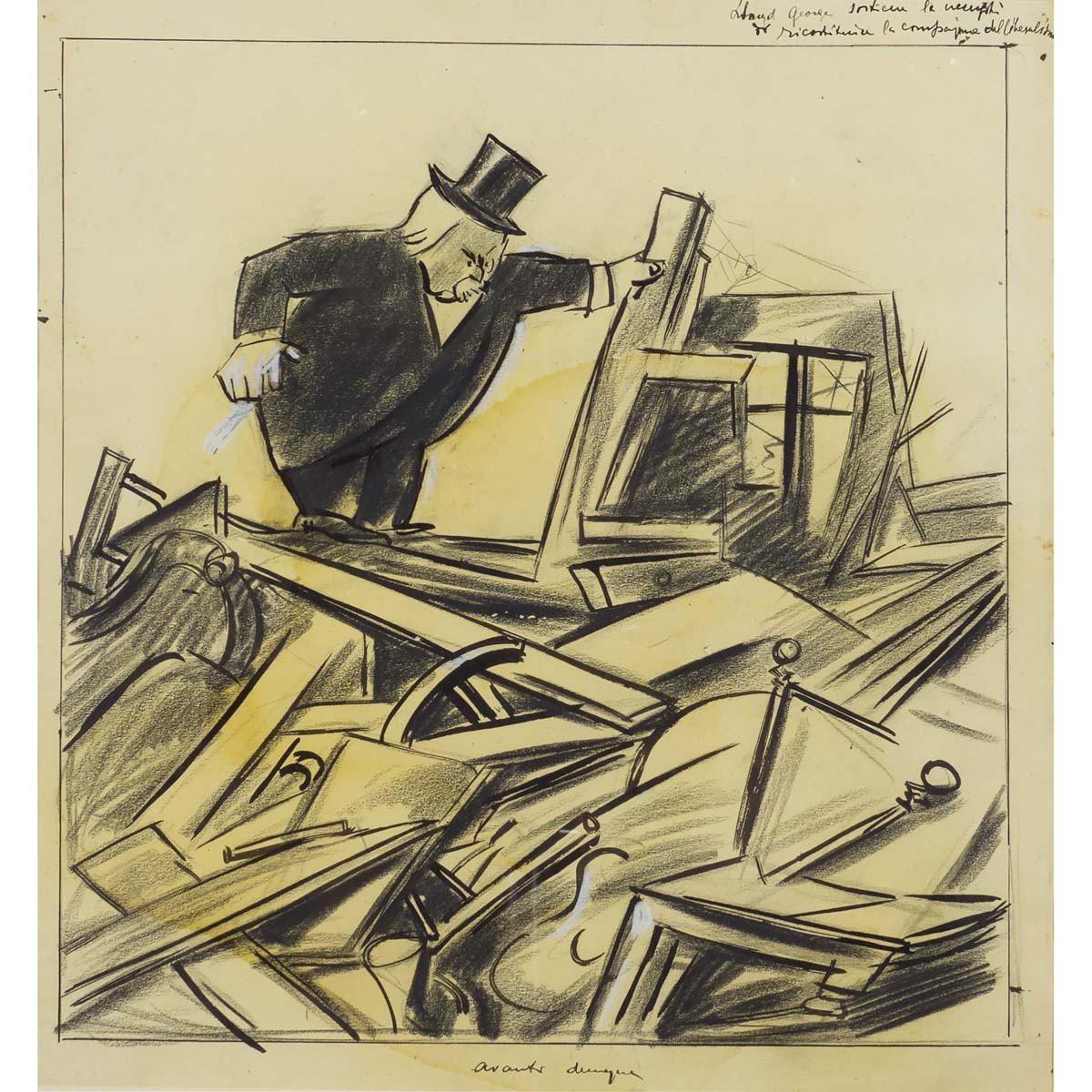 Mario Sironi Sassari 1885 - Milano 1961 43,6x40 cm. "Lloyd George sostiene la...