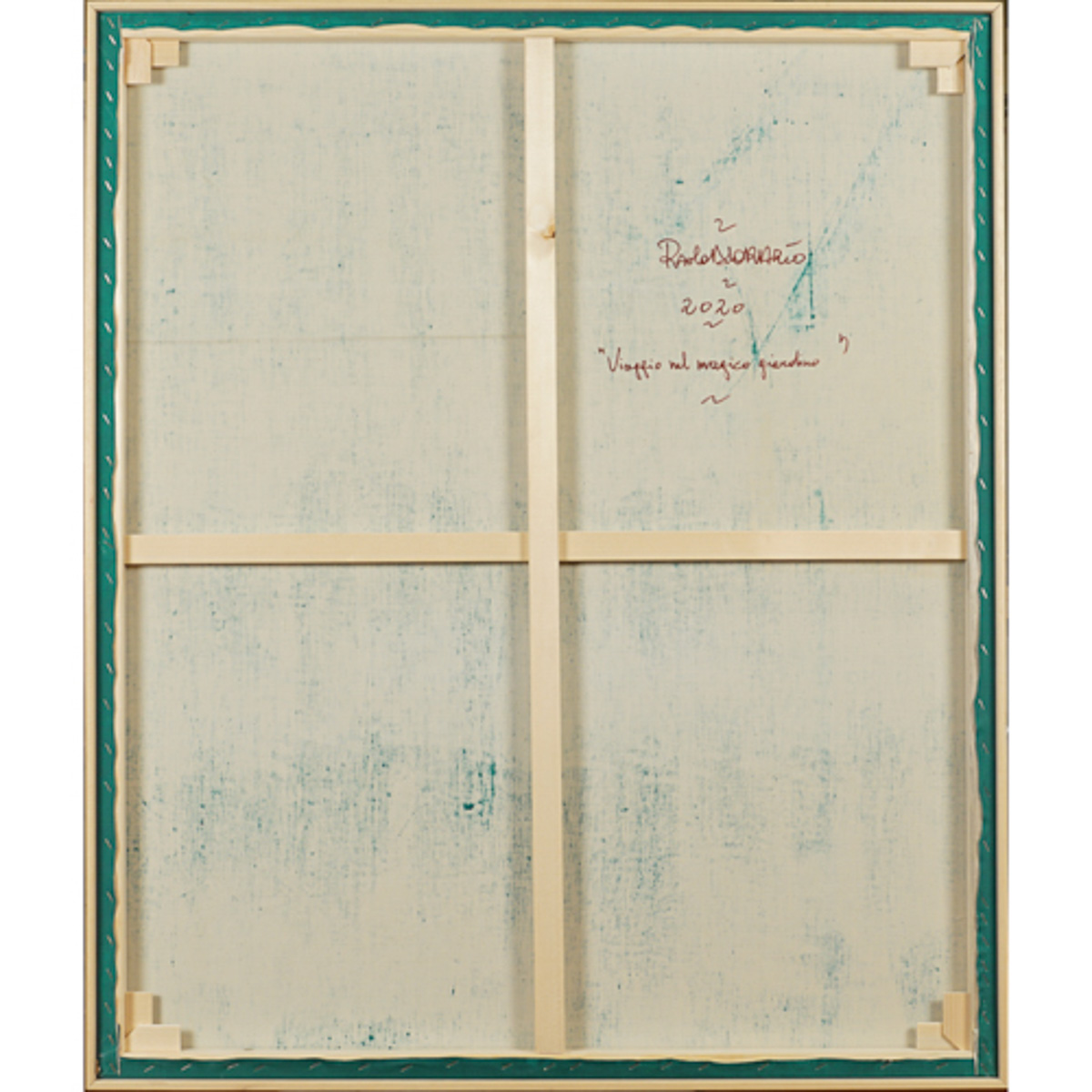 "Viaggio nel magico giardino", 2020, tecnica mista su tela, firmata, datata e titolata sul retro , entro cornice