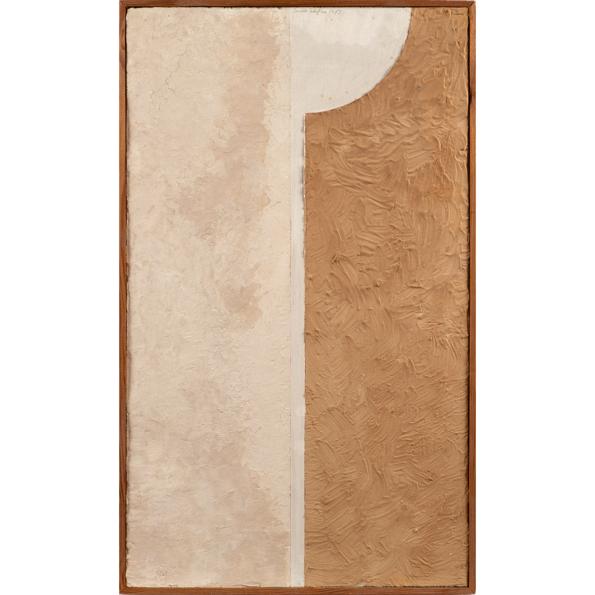 "Senza titolo", 1975, tecnica mista su tavola, firmata e datata in alto al centro, entro cornice