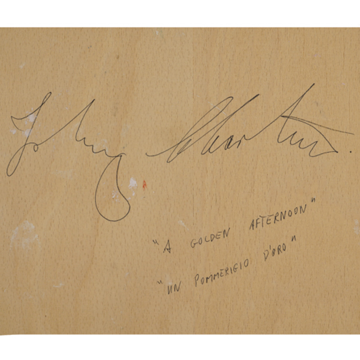 "A golden afternoon",1992, tecnica mista su tavola, firmata e datata sul retro, entro cornice