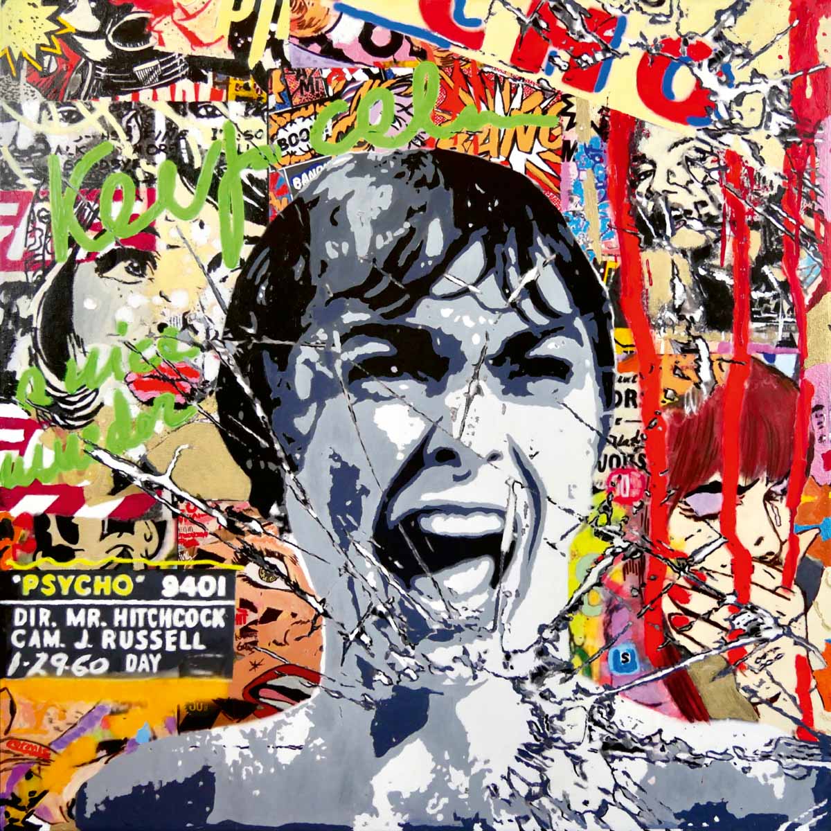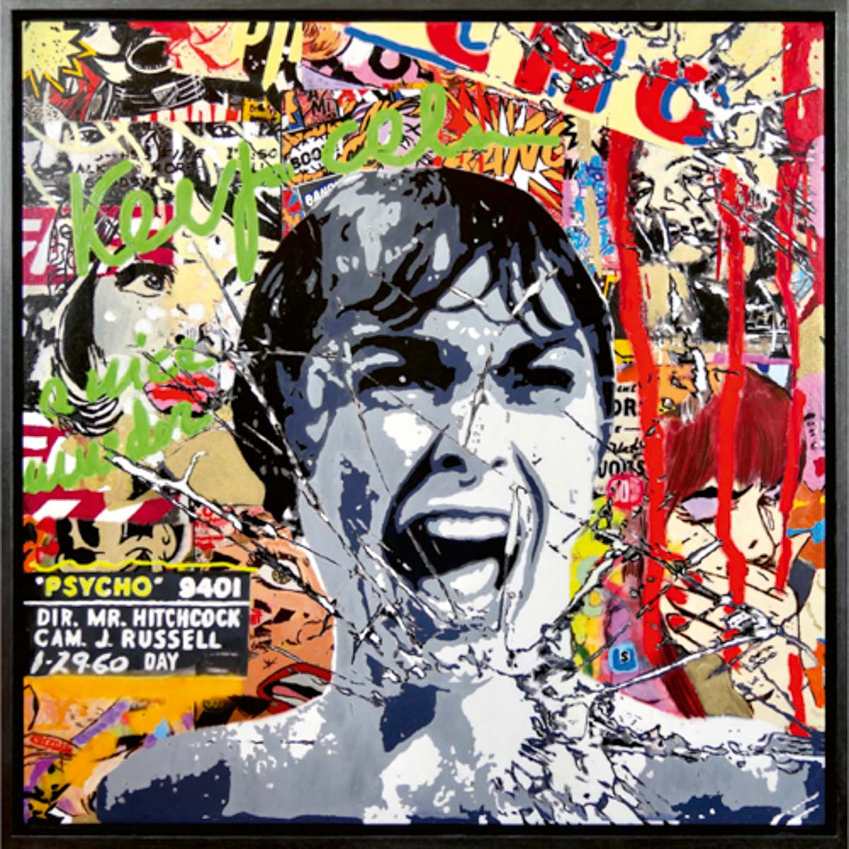 "Psycho", 2019, acrilico su tela, firmato sul retro, entro cornice, autentica dell'artista su fotografia