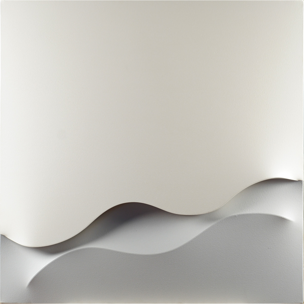 " ICSEI - Bianco", acrilico su tela estroflessa, firmato e titolato sul retro, autentica dell'artista su fotografia