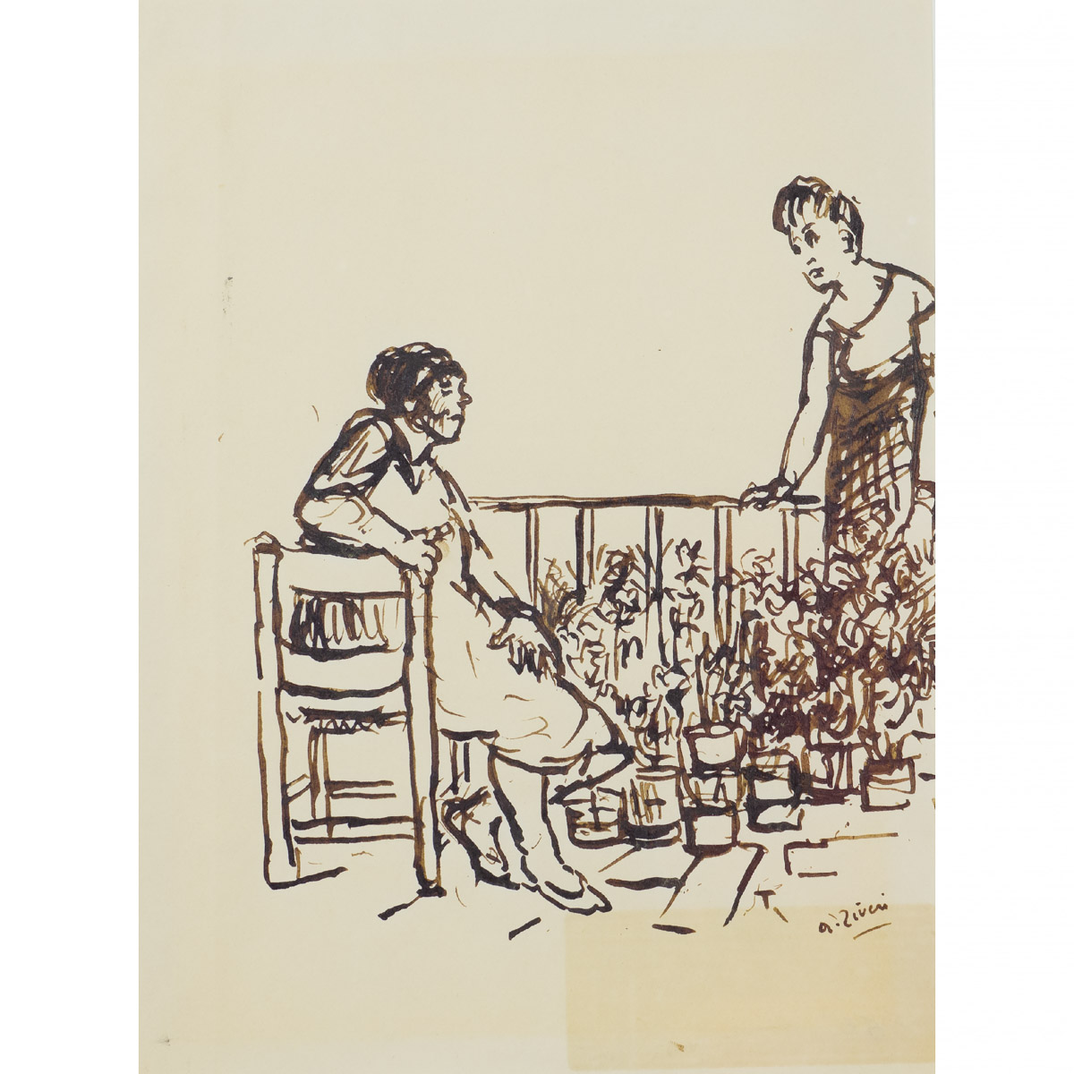Alberto Ziveri Roma 1908 - 1990 32x24 cm. "La discussione", 1964, inchiostro...