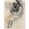 "Due figure", anni 60, china e matita grassa su carta, firmata in basso a destra, entro cornice. Collezione Dario Micacchi