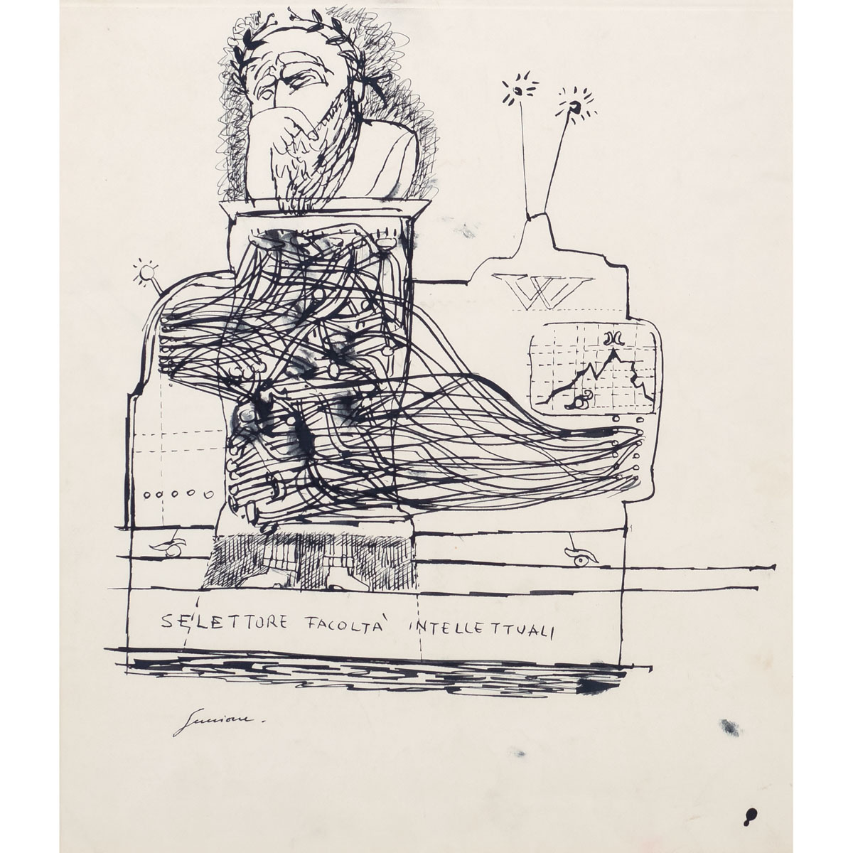 "Selettore facoltà intellettuali", china su carta, firmata in basso a sinistra, entro cornice. Collezione Dario Micacchi