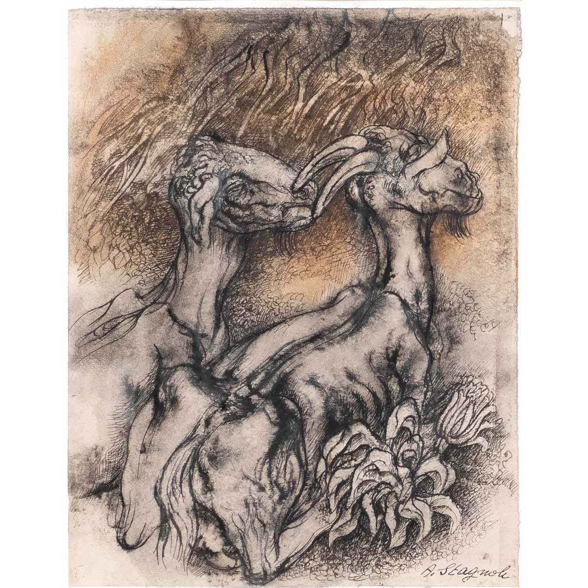 Lot 197 | Antonio Stagnoli Bagolino 1922 - 2015 34x25 cm. "Capre", inchiostro e...