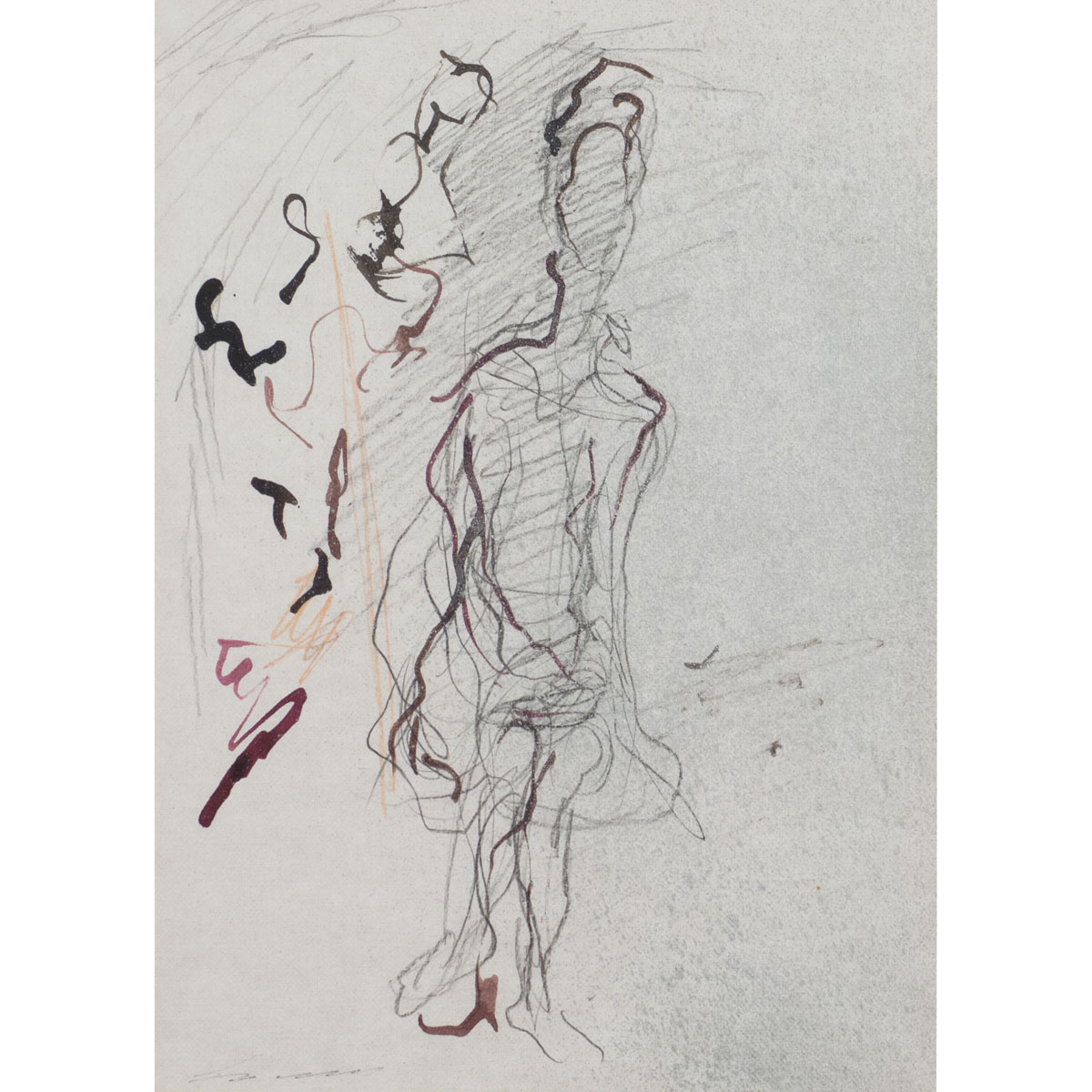"Figure", 1975, matita e inchiostro su carta, firmata in basso a sinistra, entro cornice