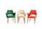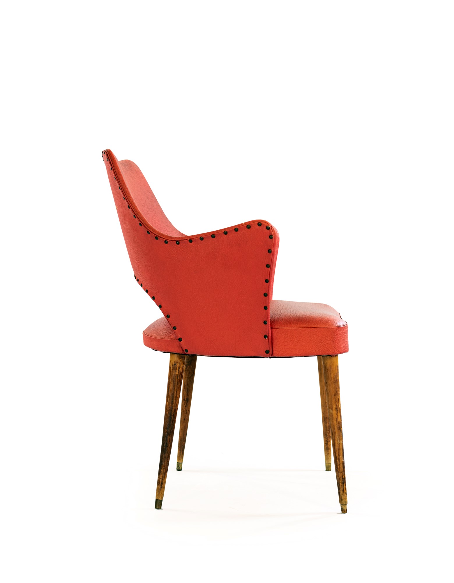 Tris di Poltroncine - con braccioli struttura in legno rivestite in ecopelle in rosso verde grigio - 1950ca - PRODUZIONE ITALIANA - cm 41x47x59
