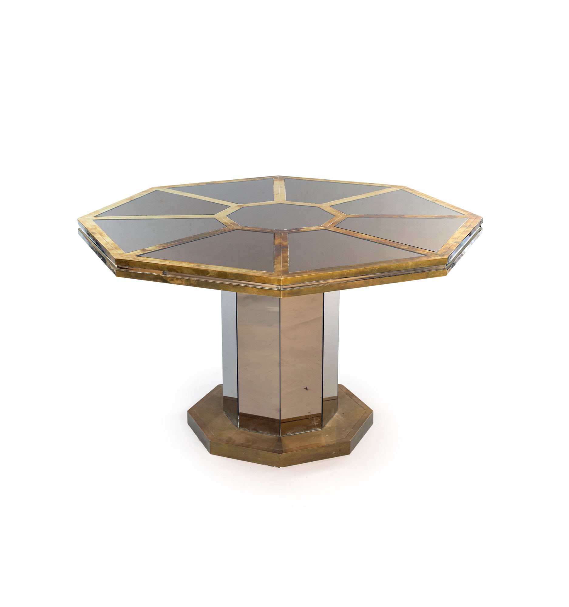 Tavolo - ottagonale in ottone cromo con vetri specchiati - 1970 - ROMEO REGA - cm65x1.25x1.25