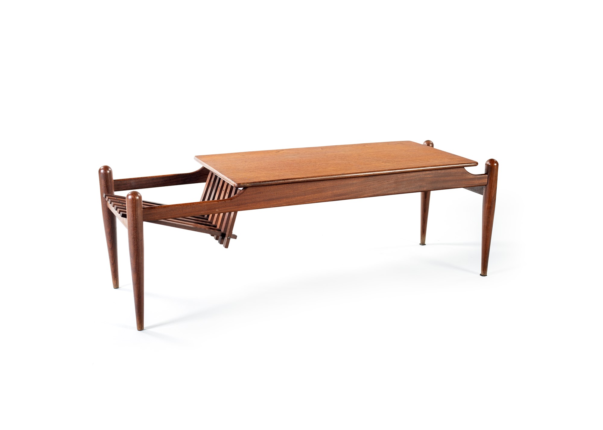 Tavolino - in legno di teak con portariviste - 1960 - PRODUZIONE DANESE - cm 40x115x42