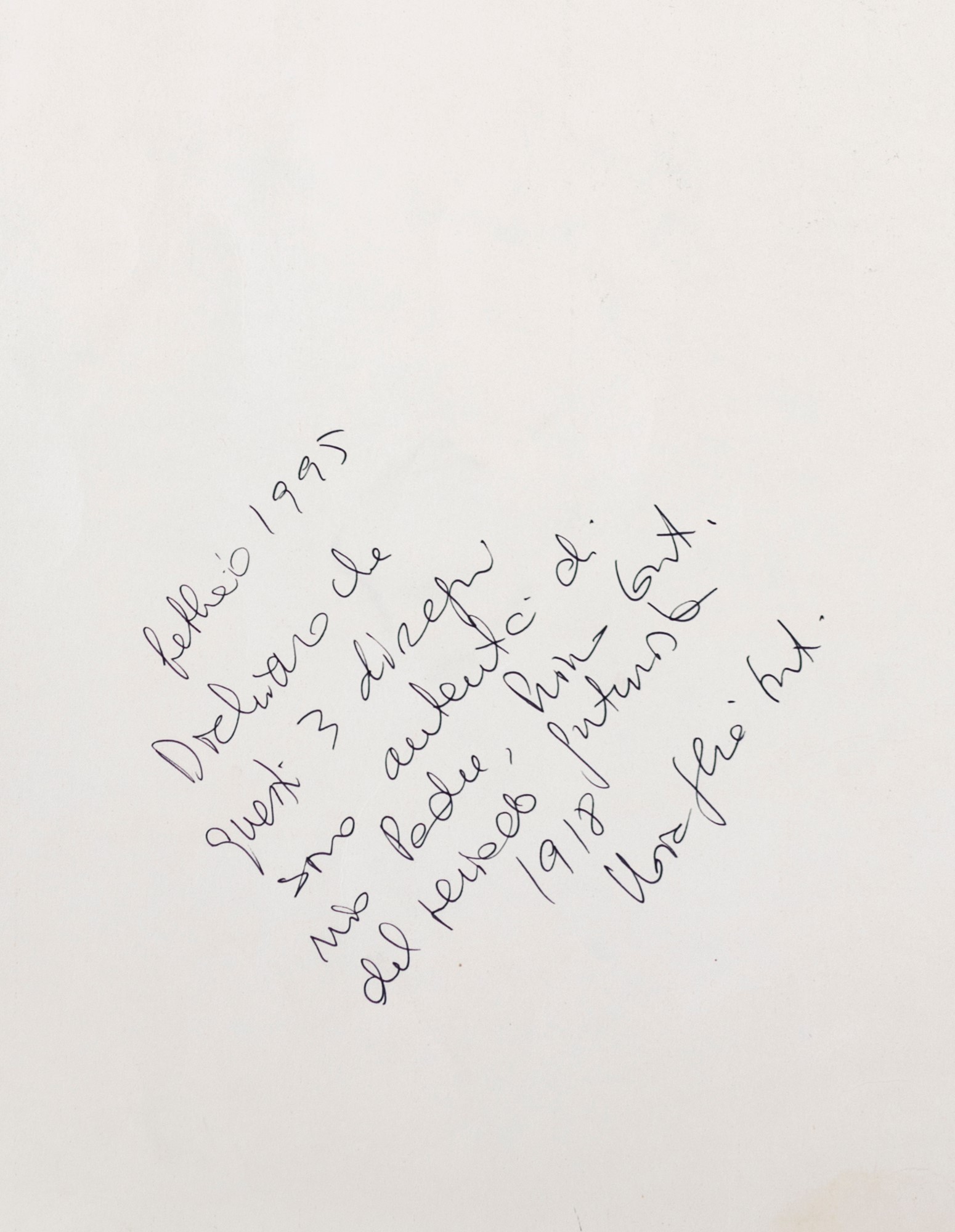 Autentica di pugno della figlia Maria Gloria Conti Bicocchi.