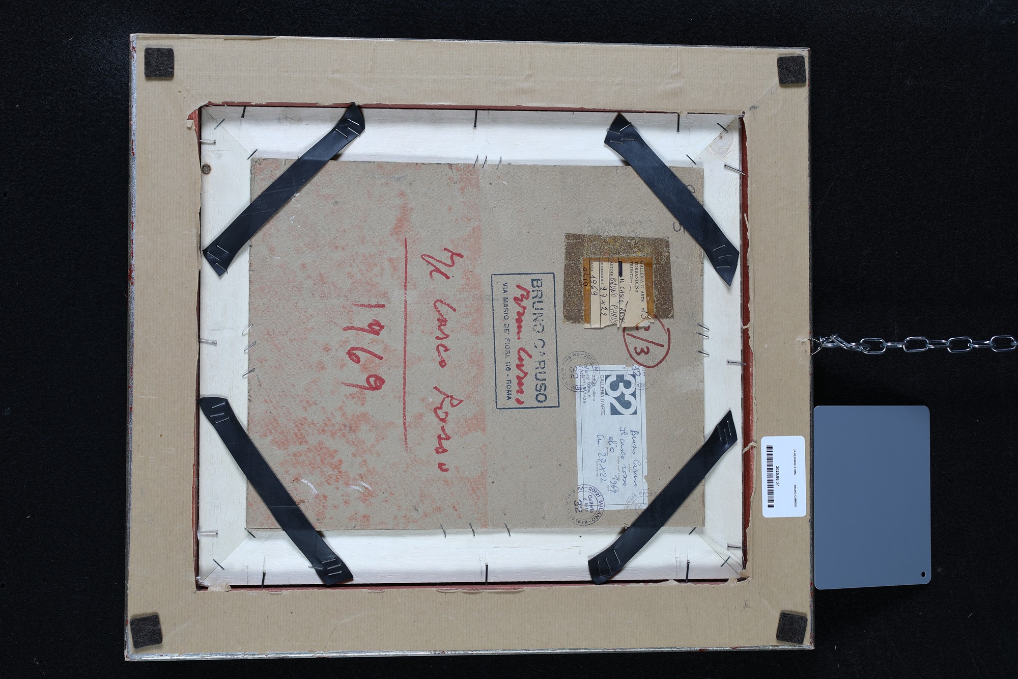 Timbro al retro dello studio Bruno Caruso. Firma, titolo e data al verso.