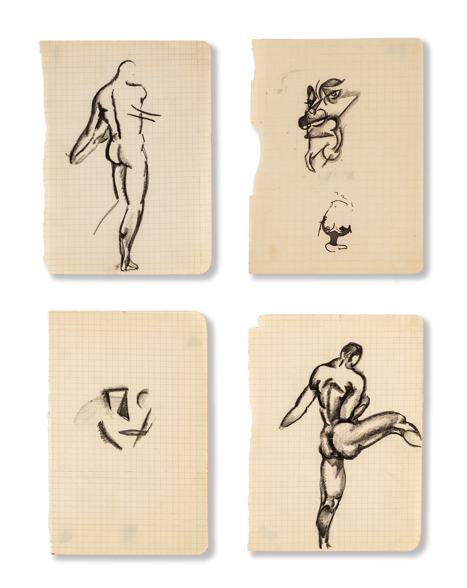 Primo Conti, Lotto di 4 studi per un quadro, 1920