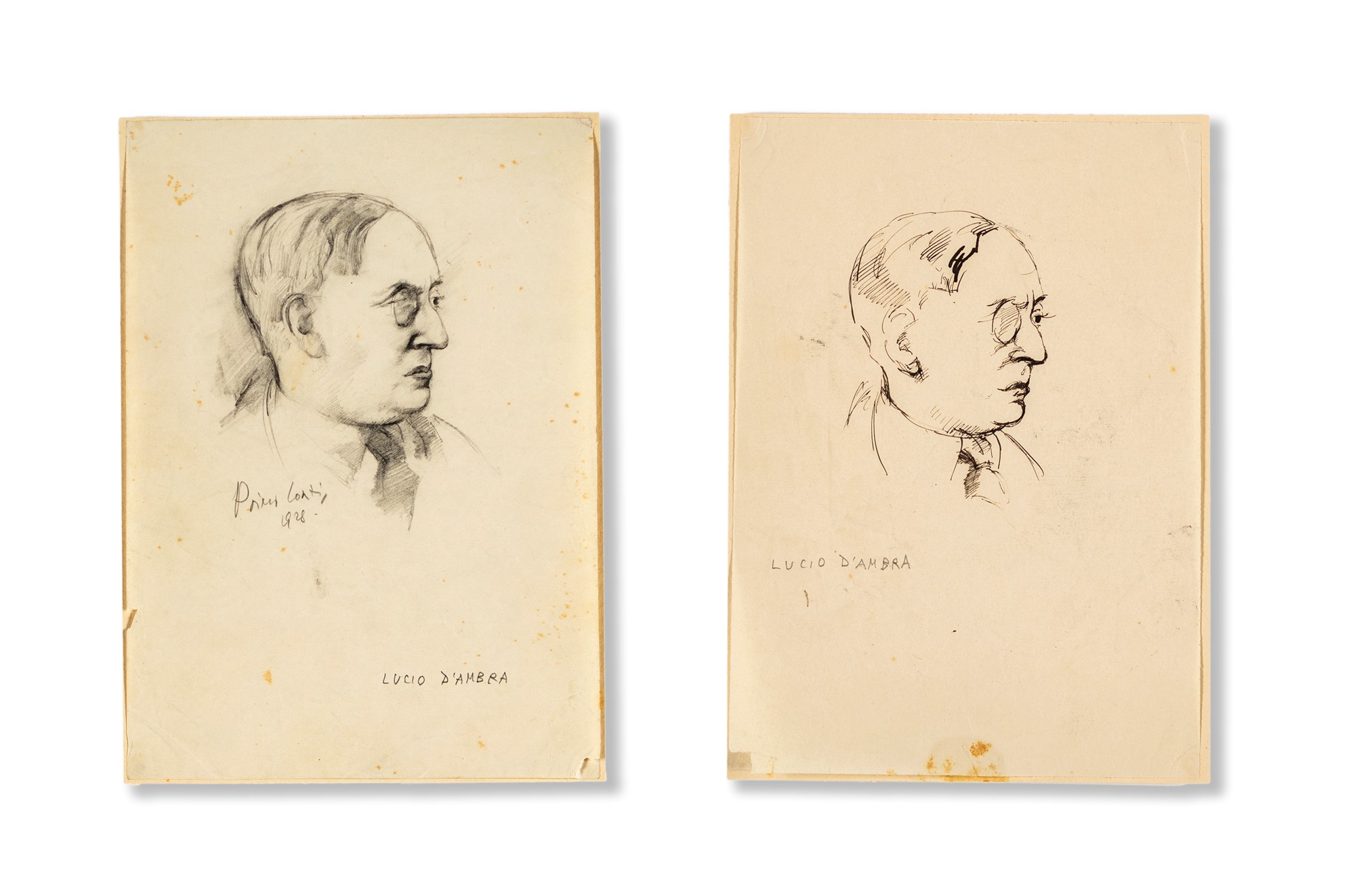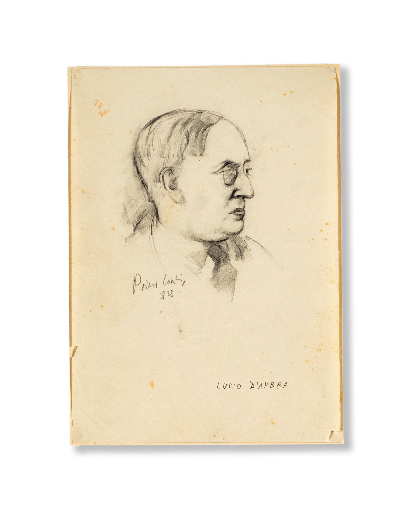 A) Ritratto di Lucio D'Ambra, cm 24,5x17,5. Matita su carta. Firma, data e titolo sul fronte "Primo Conti, 1928, Lucio d'Ambra".