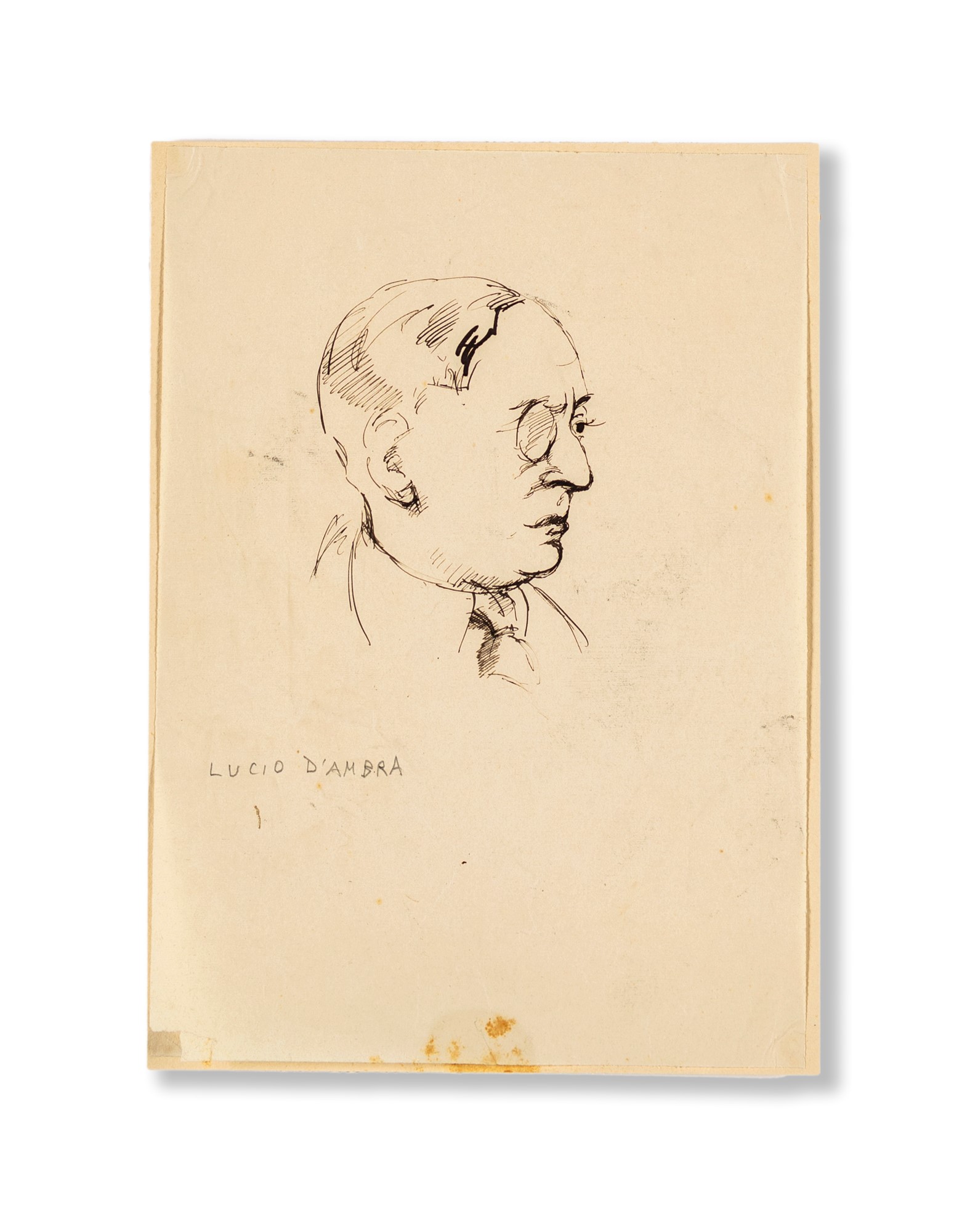 B) Ritratto di Lucio D'Ambra, cm 25x18. China su carta. Titolo sul fronte "Lucio d'Ambra".