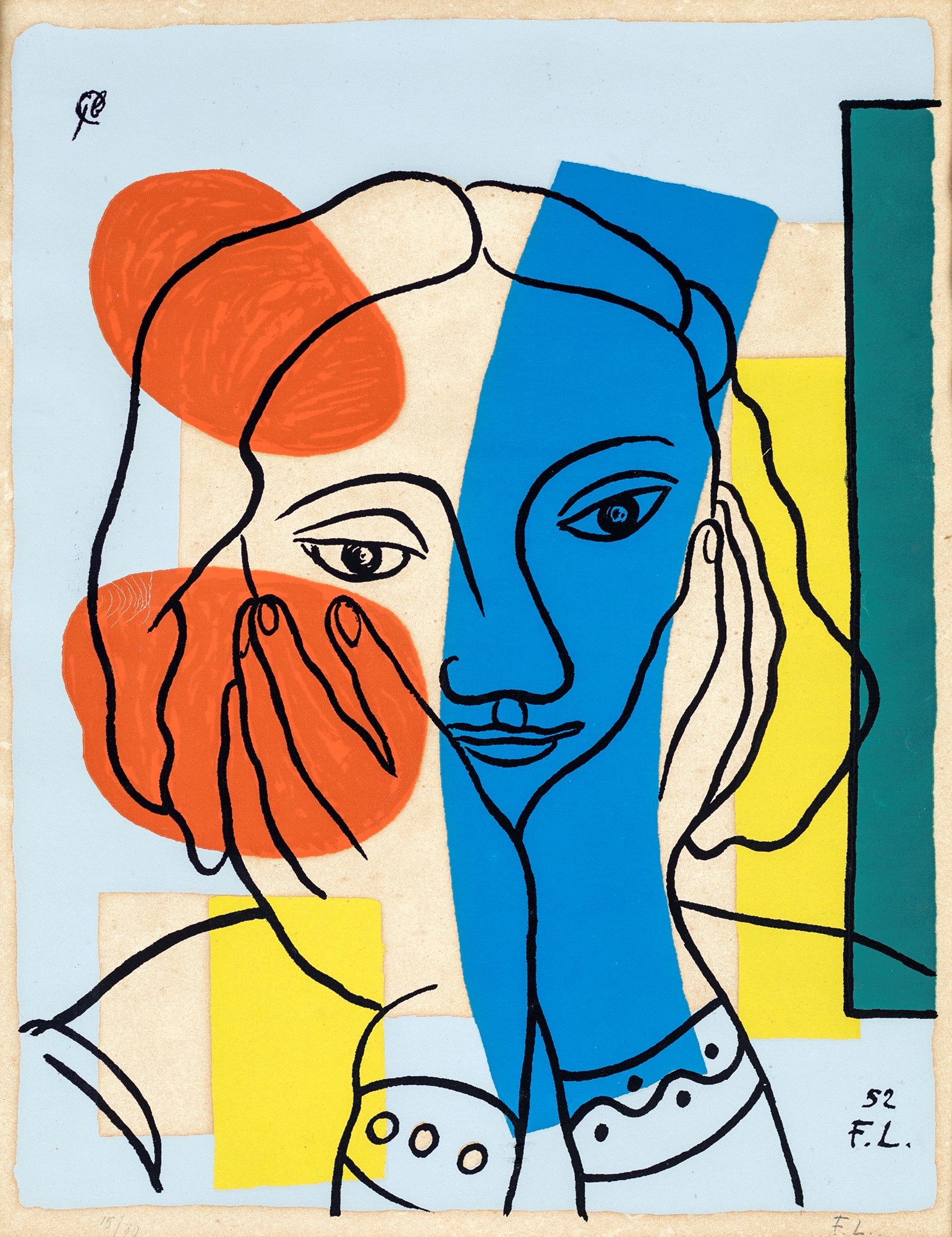 Timbro a secco in basso a destra "Serigraphie F. Leger". Firma e numerazione a matita sul fronte "F.L. 15/80". Firma e data su lastra "FL 52".