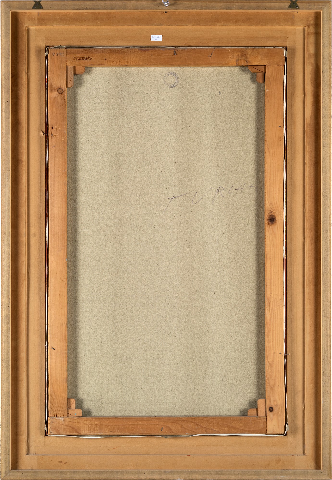 Firma sul fronte in basso "Turcato". Al verso reca timbro della Galleria di Roma. Firma "Turcato" al verso.