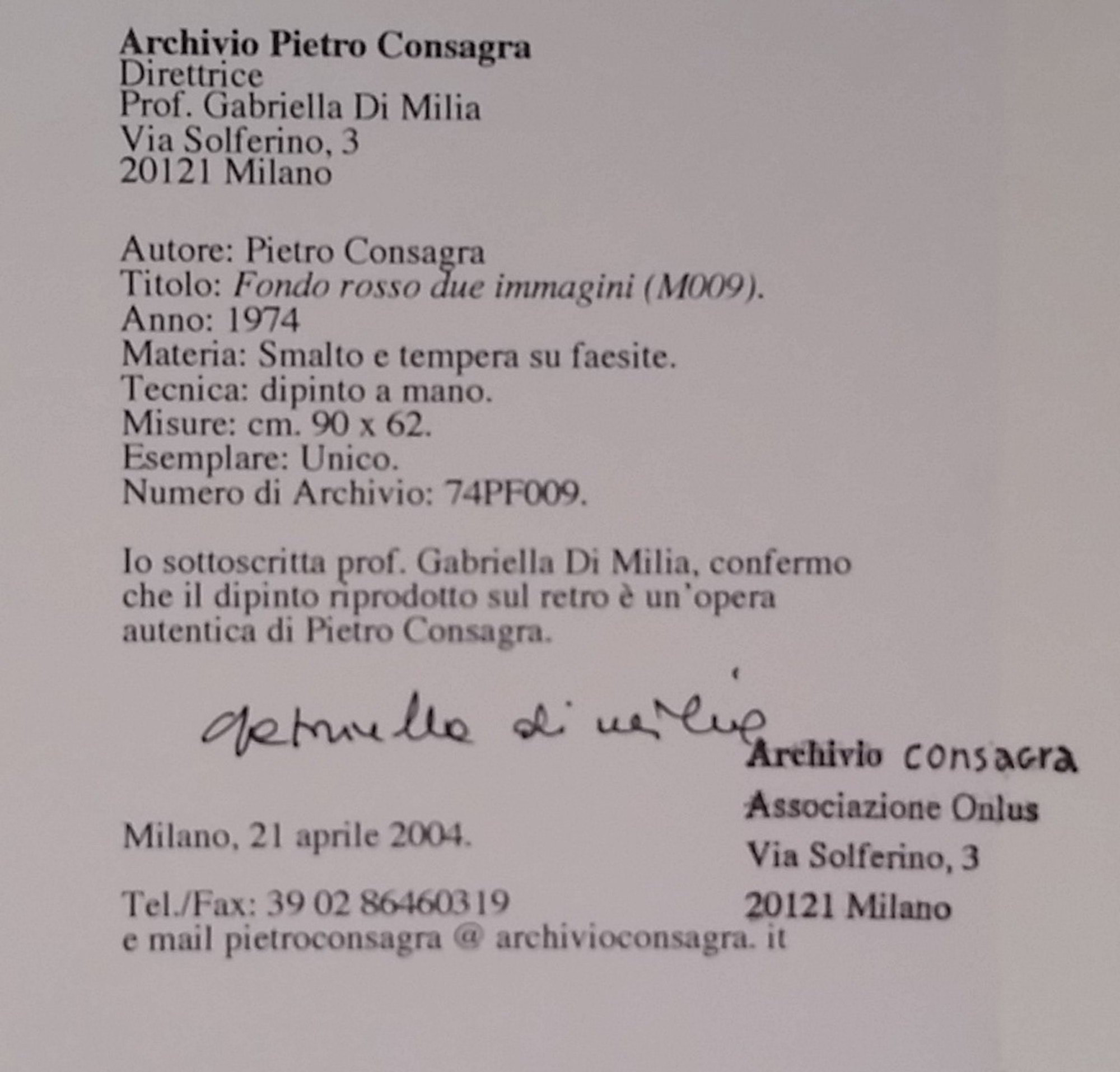 CONSAGRA PIETRO Mazara del Vallo (Tp) 1920 Fondo rosso due immagini M009 1974...