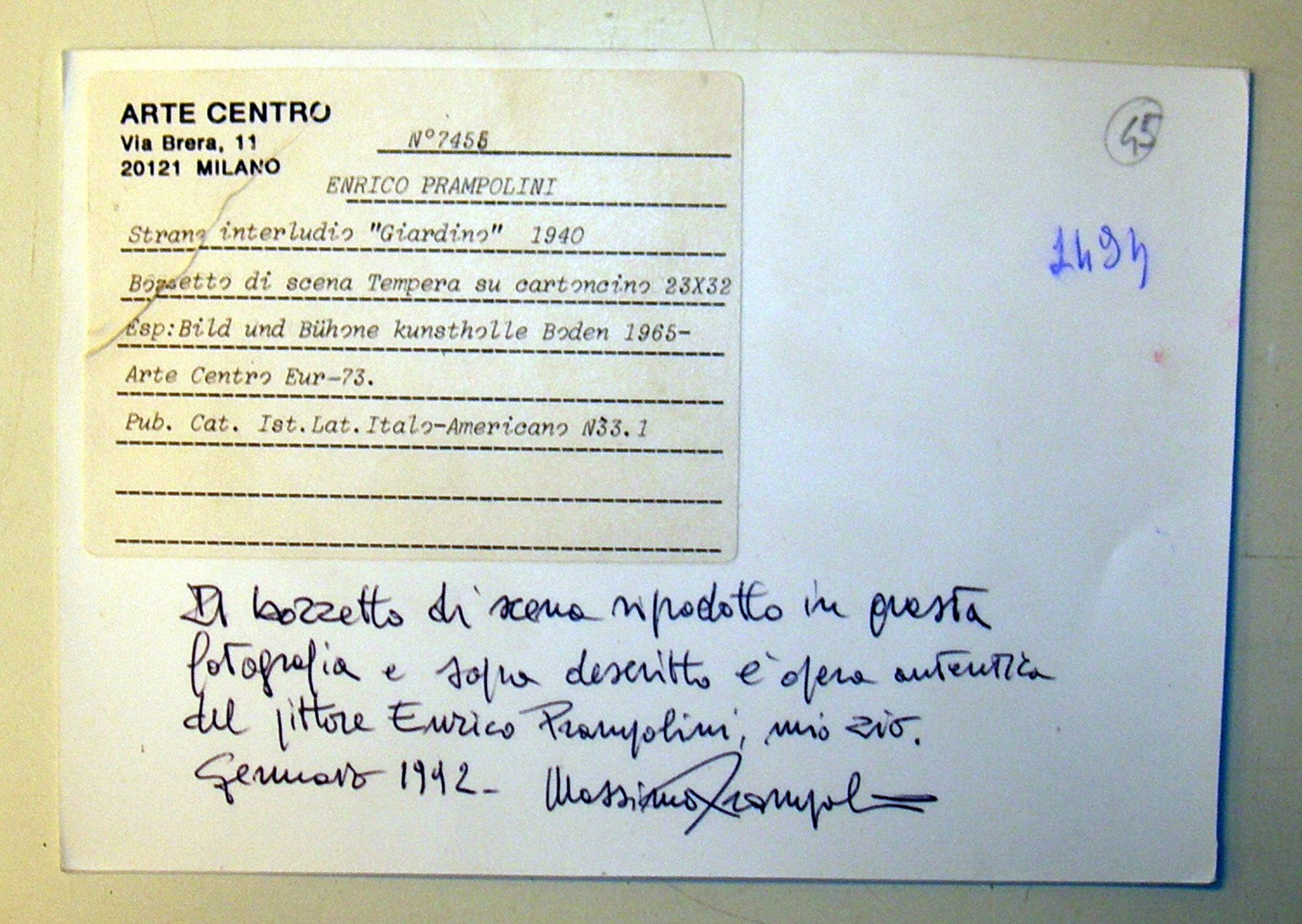 PRAMPOLINI ENRICO Modena (MO) 1894 Strano interludio - Giardino (bozzetto di...
