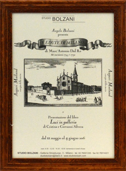 Manifesto dello Studio Bolzani sulle Vedute di Milano di Marc'Antonio dal Re (cm 41x29), in cornice