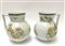 Coppia di versatoi in ceramica, corpo globulare decorato sul fondo bianco da mazzi
