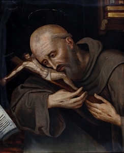 PITTORE ITALIANO DEL '700 “San Francesco” Olio su tavola cm. 54x44 Dedica ad personam al retro.