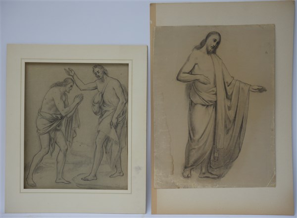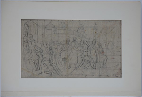 Gruppo di cinque disegni del secolo XIX a matita nera di misure e soggetti diversi