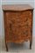 Antico comoncino di forma mossa a due cassetti interamente lastronato in radica