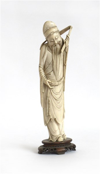 Scultura in avorio raffigurante "Saggio con barba", base in legno Cina, inizi s