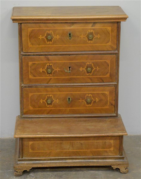Lot 129 | Inginocchiatoio con fronte a tre cassetti intarsiati e riquadrati, secolo XVII