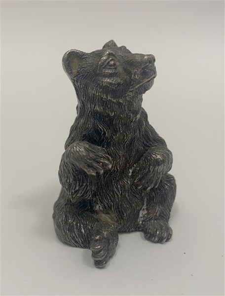 Sculturina raffigurante orso in lamina d'argento, firmata alla base (h. cm 5)
