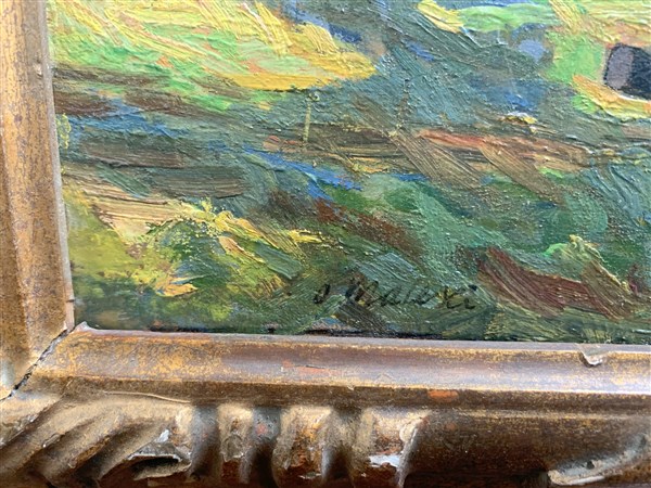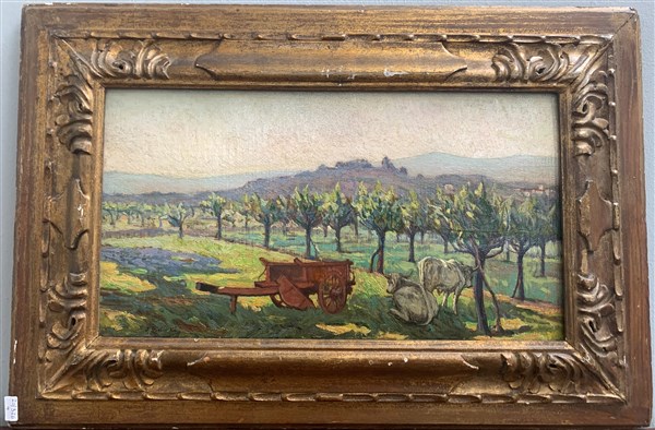 Giovanni Malesci "L'aratro" olio su tavola (cm 23.5x44) Reca firma non coeva in
