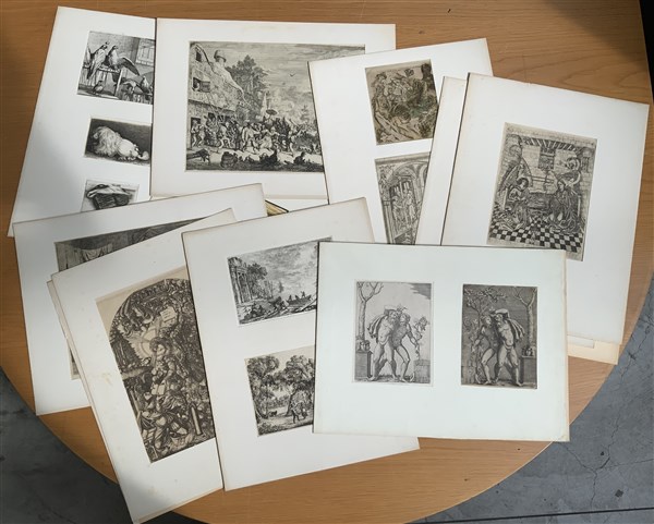 Cartella contenente numerose incisioni di antichi maestri, tirature tarde (difetti)
