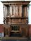 Credenza neorinascimentale in legno intagliato, parte inferiore a due ante, vano e anta a vetro, parte superiore a vani e due ante centrali, montanti torniti sorretti da figure fantastiche a tutto tondo (cm 200x260x62 ca.) (difetti)
