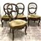 Gruppo di quattro sedie con schienale ovale a giorno, gambe e fascia sagomate e
