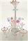 Lampadario in vetro di Murano decorato a foglie e fiori nei toni dell'azzurro e del rosso (h. cm 80) (difetti)
