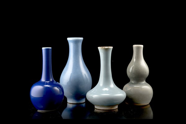 Quattro vasetti in porcellana monocroma nei toni del blu Cina, secolo XIX (h.ma