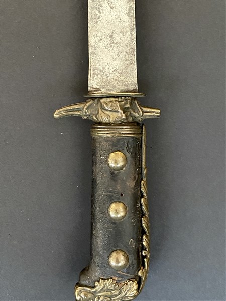 Spada da caccia con impugnatura in legno ricoperta di cuoio con fianco e termin