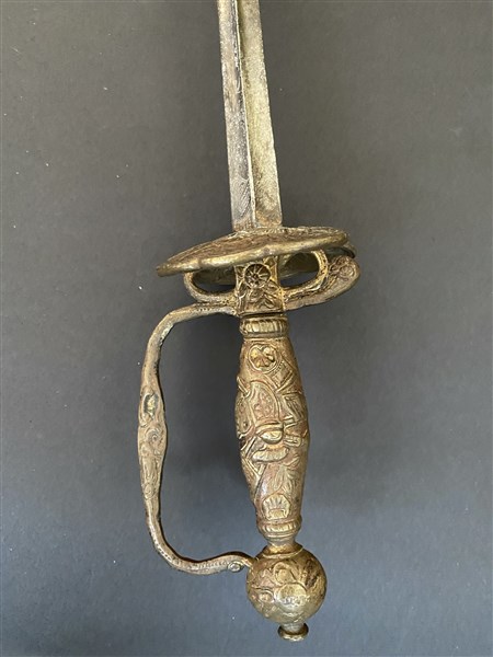 Spada con fornimento in bronzo dorato con guardia a staffa riccamente cesellato