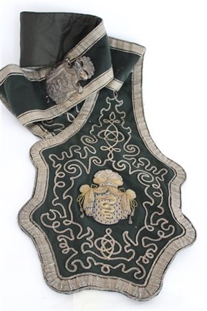 Pettorale da cavallo in panno verde scuro con passamanerie in filo d'argento. A