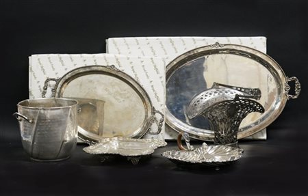 Lotto composto da due vassoi biansati, un cestino, un'antipastiera, un contenit