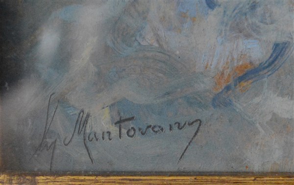 Luigi Mantovani Due dipinti ad olio su faesite e cartone pressato raffiguranri "
