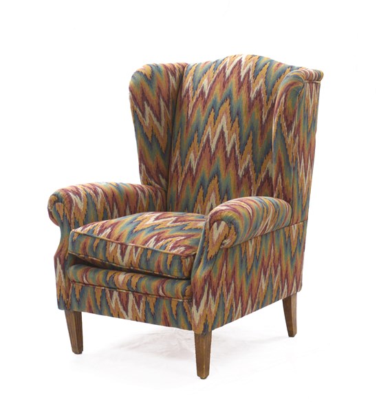 Bergère con piedi anteriori scanalati, rivestita con tessuto a fiamma (difetti)