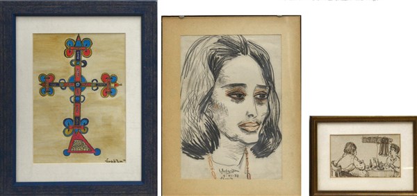 Lotto composto da tre tecniche miste su carta, di autori, soggetti e misure div