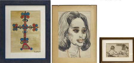 Lotto composto da tre tecniche miste su carta, di autori, soggetti e misure diverse