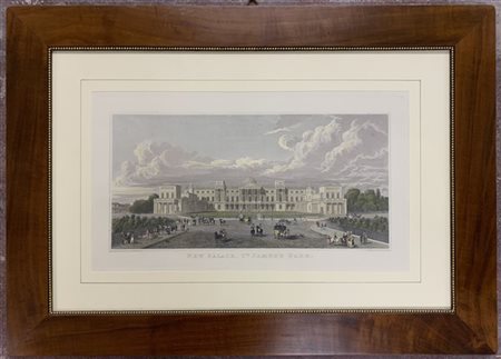 Incisione del secolo XIX raffigurante New Palace in St. James Park (cm 27x45) I