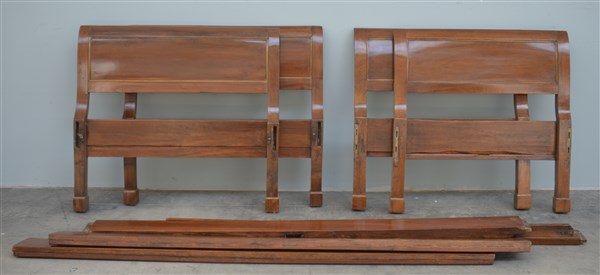 Coppia di letti singoli Impero con profili in ottone e piedi a plinto. Secolo XIX (restauri)