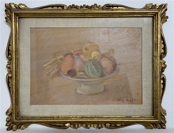 Moreno Zoppi "Alzata con frutta" dipinto ad olio (cm 14x20) Firmato in basso a d